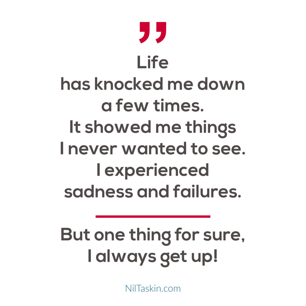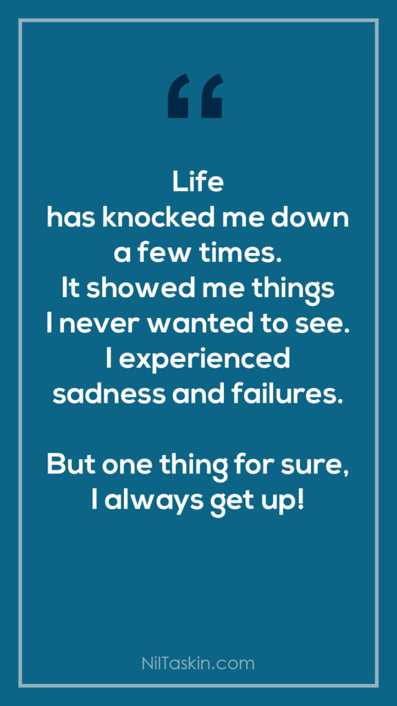 Quote: Life has knocked me down a few times. It showed me things I never wanted to see. I experienced sadness and failures. But one thing for sure, I always get up!
