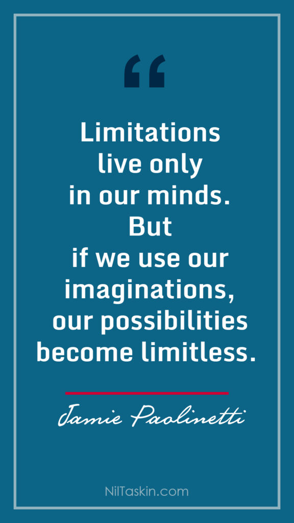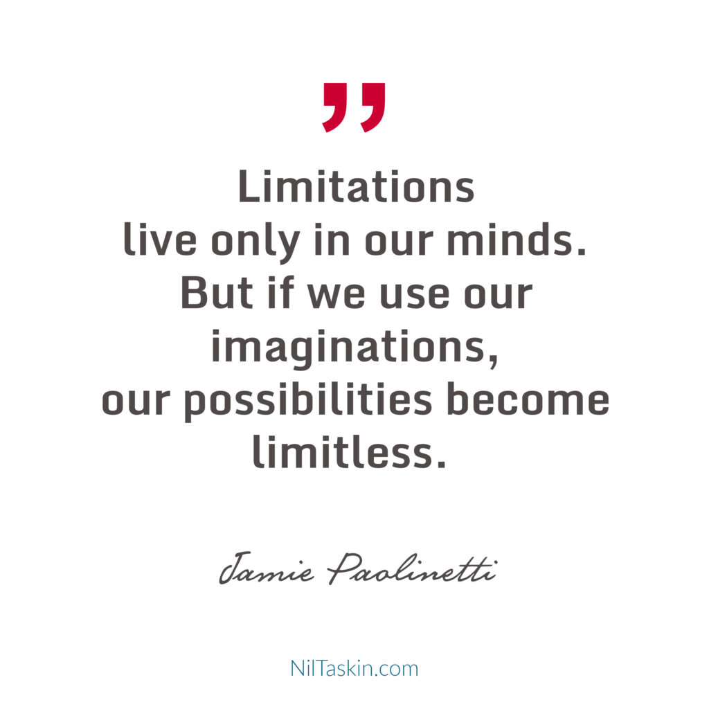 Quote: “Limitations live only in our minds. But if we use our imagination, our possibilities become limitless.” – Jamie Paolinetti