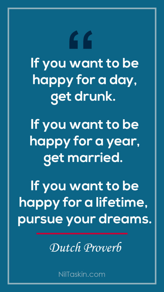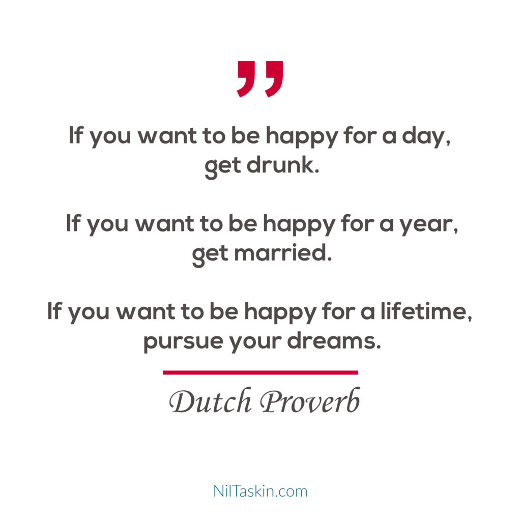 Quote: “If you want to be happy for a day, get drunk. If you want to be happy for a year, get married. If you want to be happy for a lifetime, pursue your dreams.”