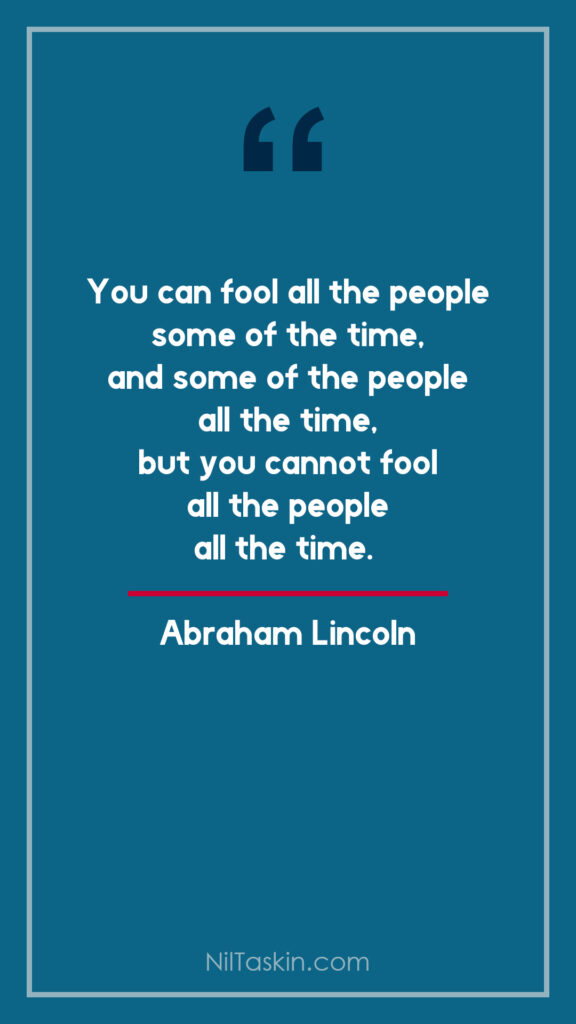 Quote: “You can fool all the people some of the time, and some of the people all the time, but you cannot fool all the people all the time.”